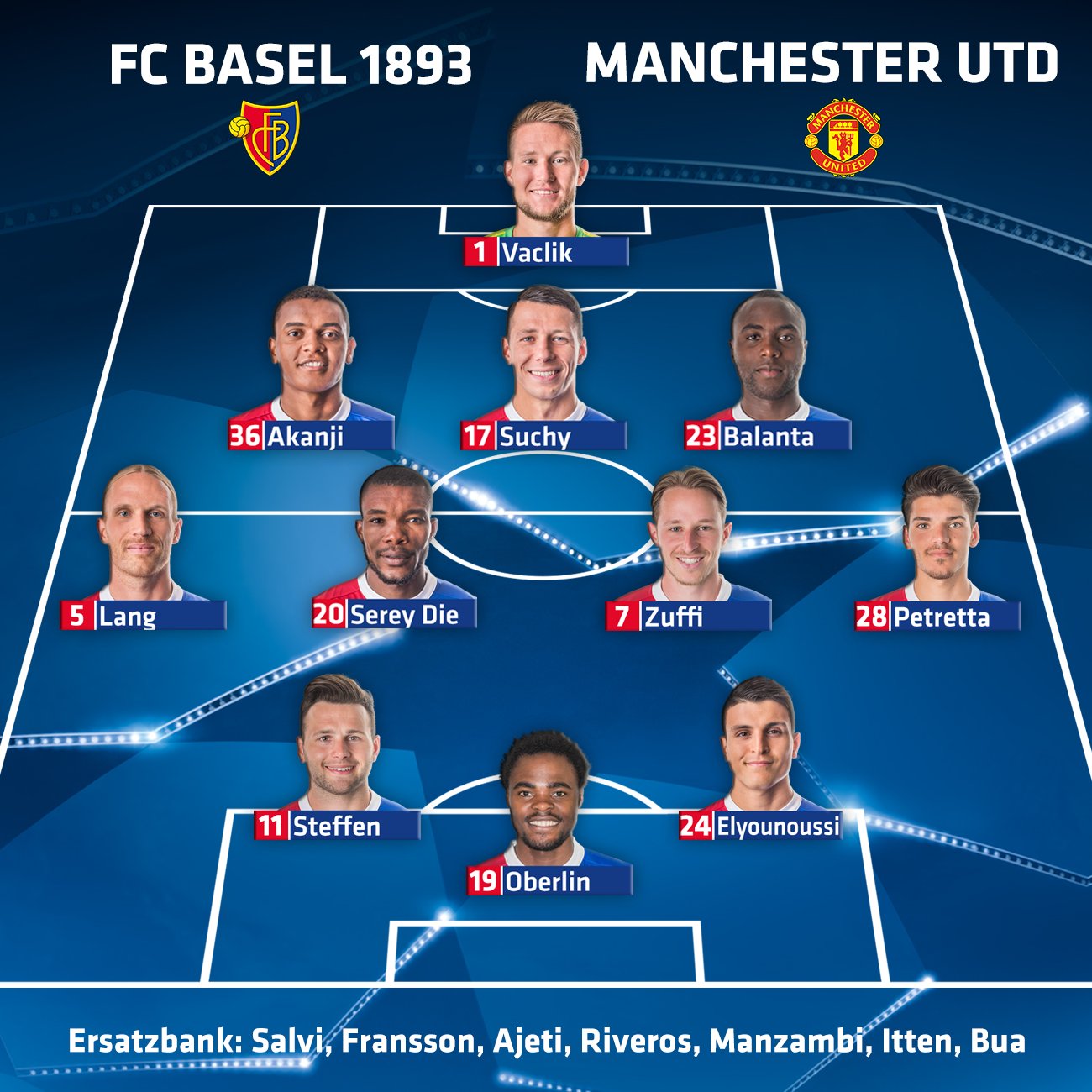 Fc Basel 1893 On Twitter Unsere Aufstellung Gegen Manutd Ucl Zammestark Fcbasel1893 Mufc